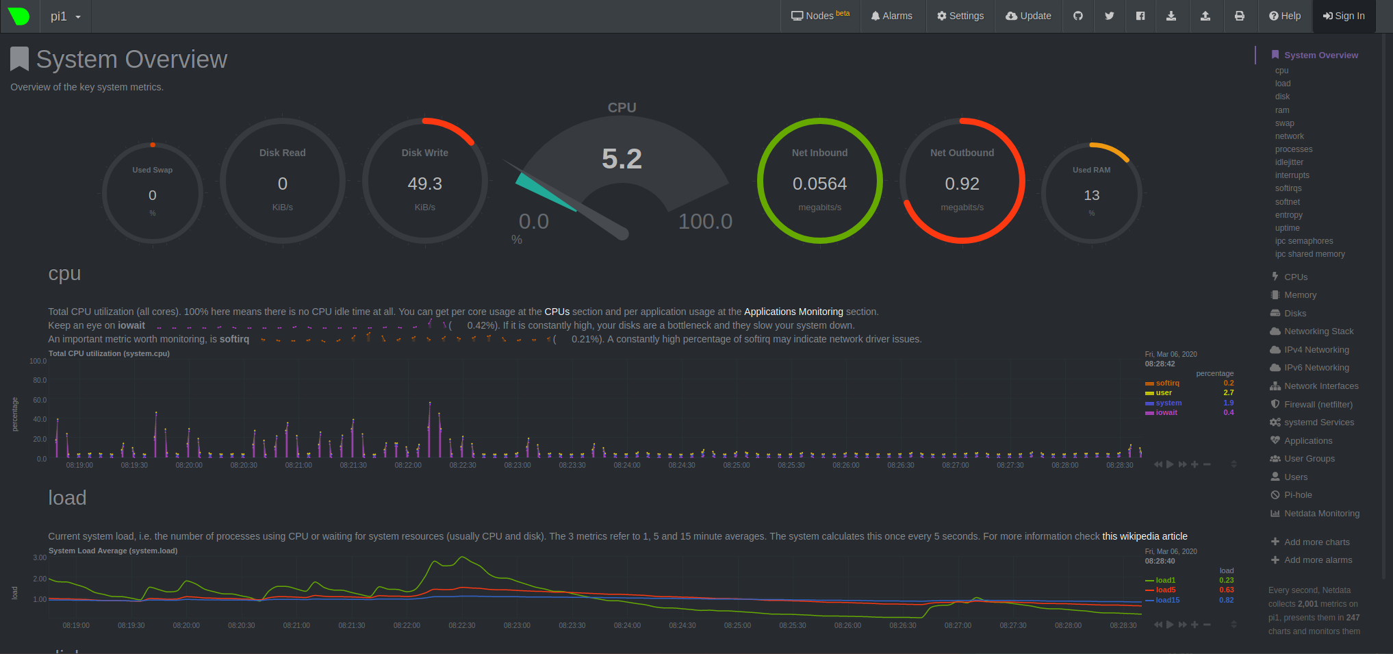 - Netdata - System monitoring